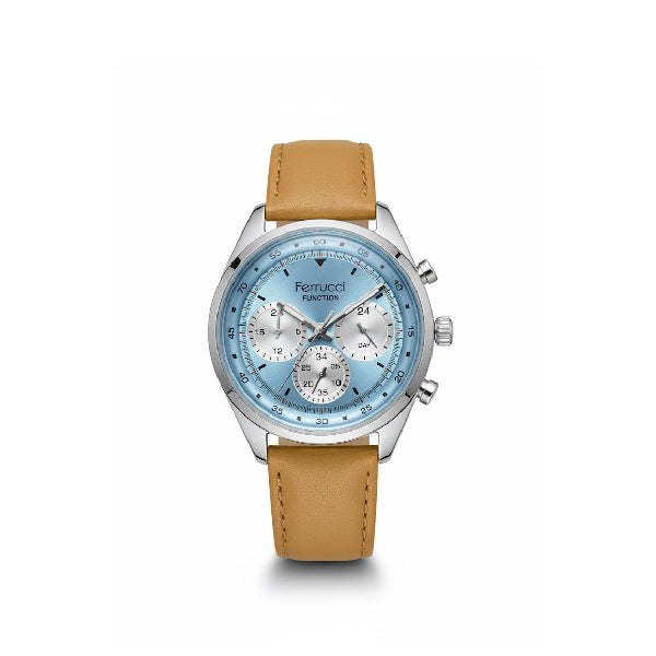 The Ferrucci FCF 03516K-01 is a stylish men's leather watch featuring a distinctive Tiffany blue dial. Part of the new collection, this timepiece combines classic leather comfort with a fresh, vibrant color, making it a perfect accessory for everyday wear or special occasions. Its elegant design supports your style with both sophistication and reliability.